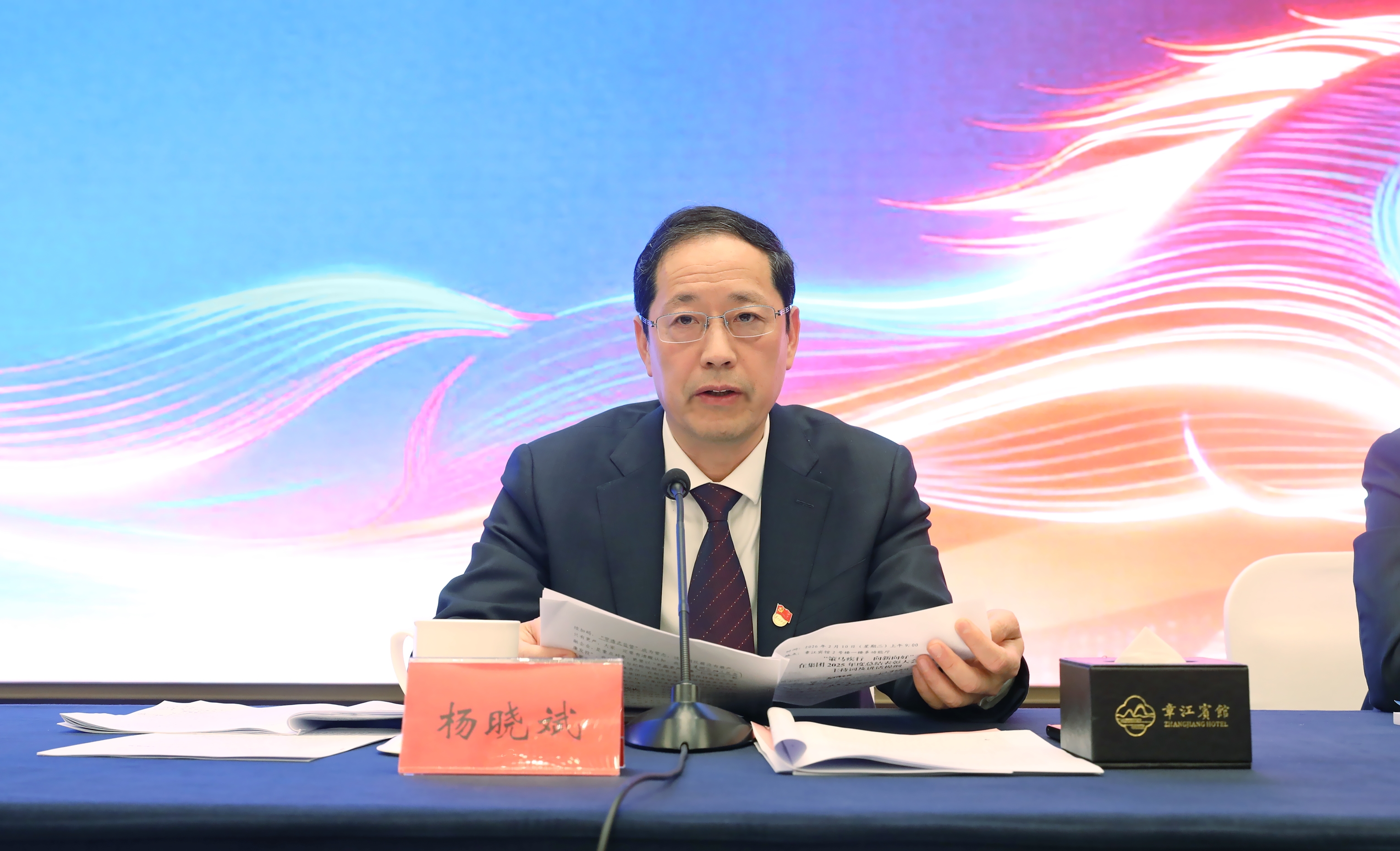 杨晓斌分析了当前发展形势,他强调,2026年是“十五五”规划开局之年,全体员工要持续坚定发展信心,凝聚团结奋进力量。要锚定“三大攻坚目标”,持续打好攻坚战,争做价值创造的驱动者、产业生态的构建者、战略资源的保障者、改革创新的先行者。要打好战略功能升级强化攻坚战,锚定“两重大一试点”定位,坚定不移做强做优做大国有资本,增强服务全市战略功能,在服务市域经济中展现更大作为。要打好改革转型进阶深化攻坚战,树牢破局思维,持续深化国有资本投资公司改革,加快建立健全适应集团高速发展的体制机制,积极推动国有资源资产化、国有资产证券化、国有资金杠杆化,持续深化集团“三化”转型。要打好风险防控全面过硬攻坚战,持续构建全面风控体系,强化精准监督,争取政策赋能,以更大力度推进风险资产化解,提高降旧控新成效,坚决杜绝系统性风险。要深入贯彻落实新时代党的建设总要求,聚焦“有正气、有温度、有内涵、有成效”党建理念,持续深入推进“金梧桐”品牌矩阵建设,实施好“人才强企”战略,建设“更高更严更廉”的“勤廉发投”,奋力谱写集团高质量发展新篇章!