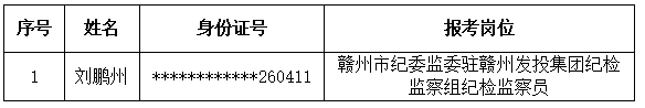 根据《赣州发展投资控股集团有限责任公司2025年公开招聘公告》,经报名、资格审查、笔试、第二轮面试、体检、考察等程序,现将赣州市纪委监委驻赣州发投集团纪检监察组纪检监察员拟录用人员名单及有关事项公告如下: