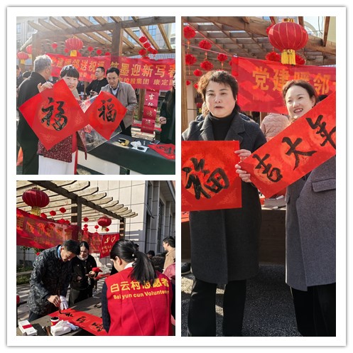 活动现场墨香四溢、暖意融融。集团党员志愿者与社区书法爱好者一同铺纸研墨、挥毫书写,笔走龙蛇间,一副副承载着吉祥寓意和美好祝愿的春联跃然纸上。社区居民们或驻足观摩,或精心挑选,或与志愿者亲切交谈,现场氛围欢愉,笑语阵阵、暖意融融。